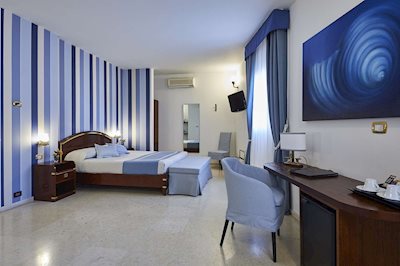 Met telefoon, tv, airconditioning en kluisje. Badkamer met douche, toilet en föhn. De voordeelkamer is identiek ingericht, echter beperkt beschikbaar.