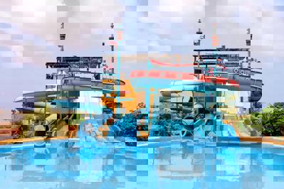 Buiten vind je vier heerlijke zwembaden met zonneterras, ligbedden, parasols en handdoekenservice (met borg). Kinderen plonzen in het aparte kinderbad of glijden van de miniglijbanen in het waterpark (tot 12 jaar).